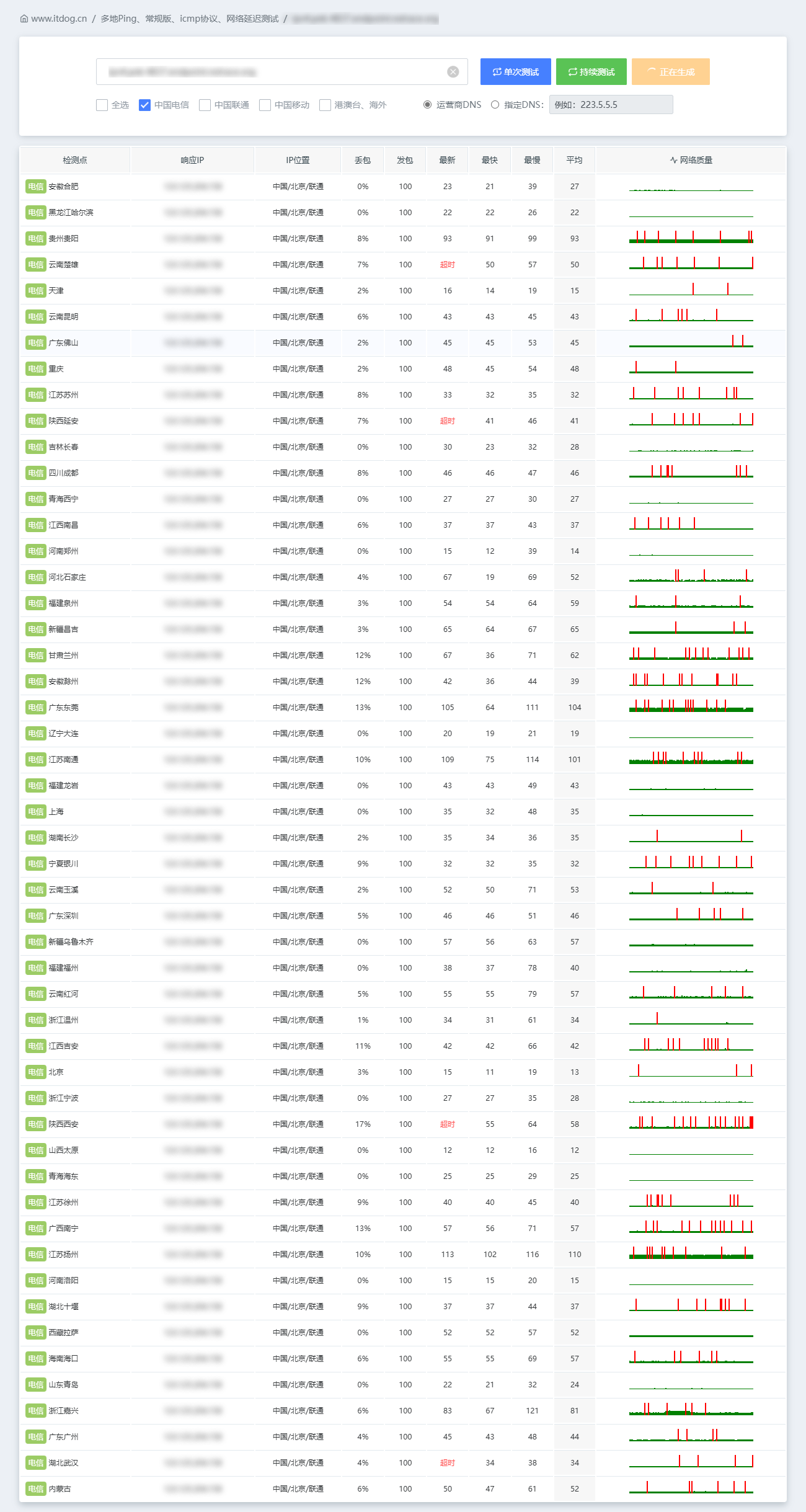 中国/北京/电信 12% 100 24 23 25 24 电信 北京 *.*.*.* 中国/北京/联通 1% 100 13 11 23 13 你说的丢包 30%甚至 60%的情况呢 |