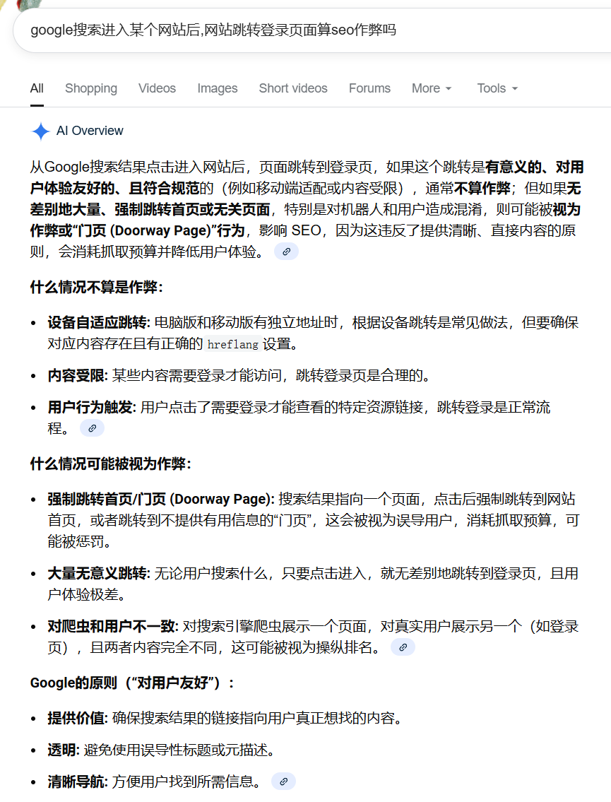 再填入 跳转进入内容页面几秒钟后强制跳转登录页面,属于 seo 作弊