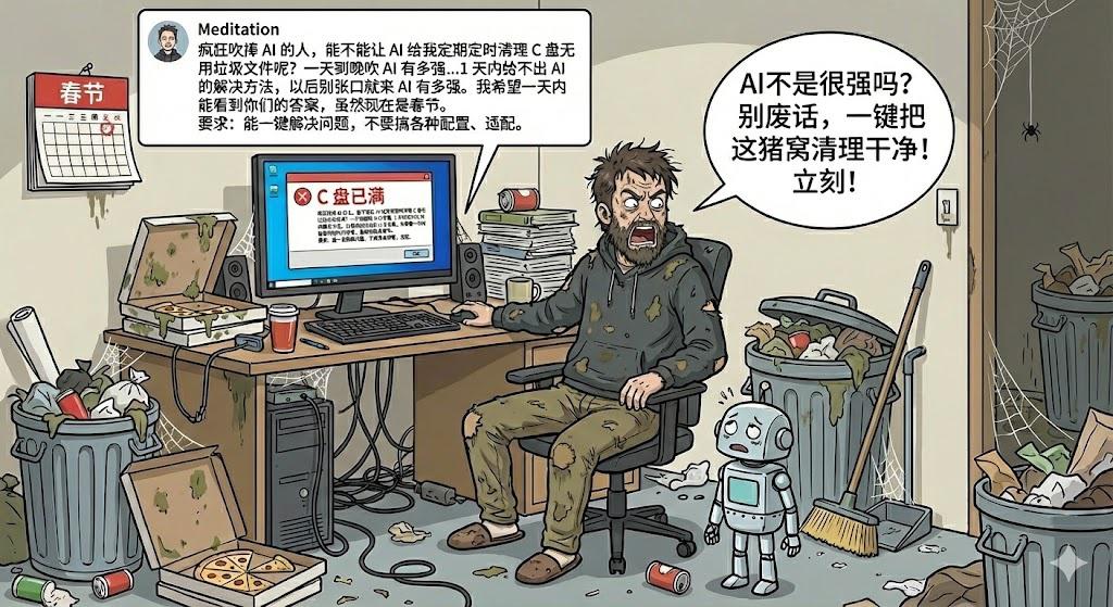 C 盘无用垃圾文件的路径,不是网上一堆文章?这需要 AI 干什么,帮你找到路径,再帮你写个删除文件的工具,真写了你敢用么