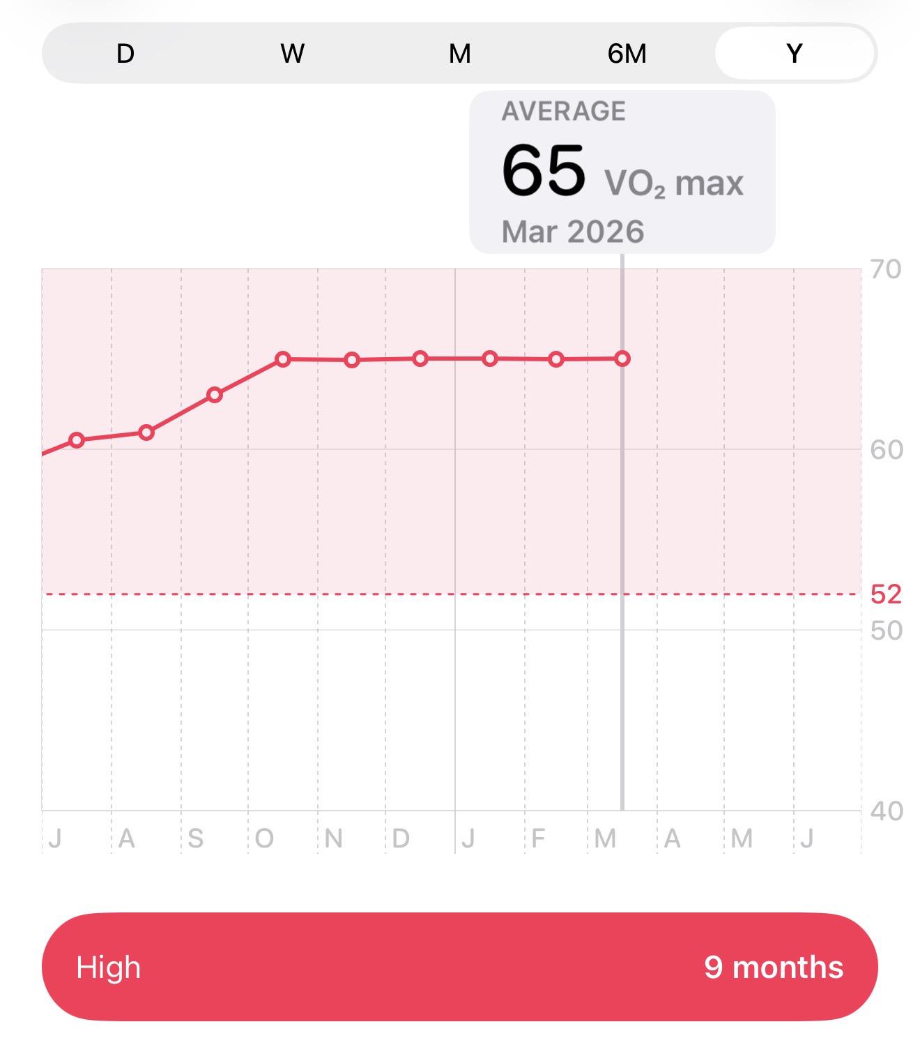 最大摄氧量 VO₂Max 只支持 14–65 ml/kg/min 的范围,一旦超过 65 ,数据就不会变了