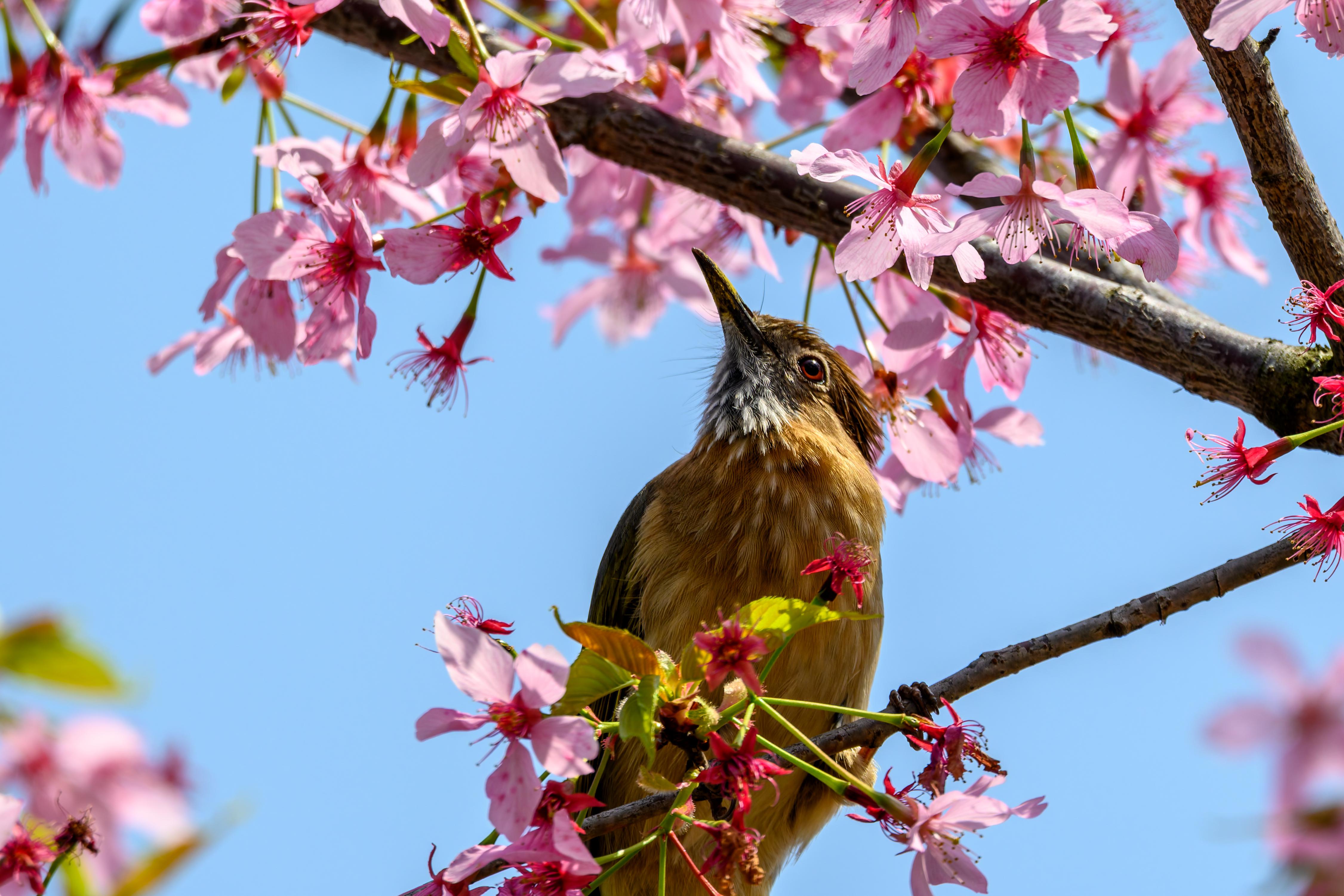 前几张绿翅短脚鹎是上周拍的,不太清楚是樱花还是桃花,理解了老法师为啥喜欢拍花鸟图,春天很适合拍鸟,光线好的情况下颜色很鲜艳。到夏天叶子多,鸟都躲在里面,想找个鸟太费劲。