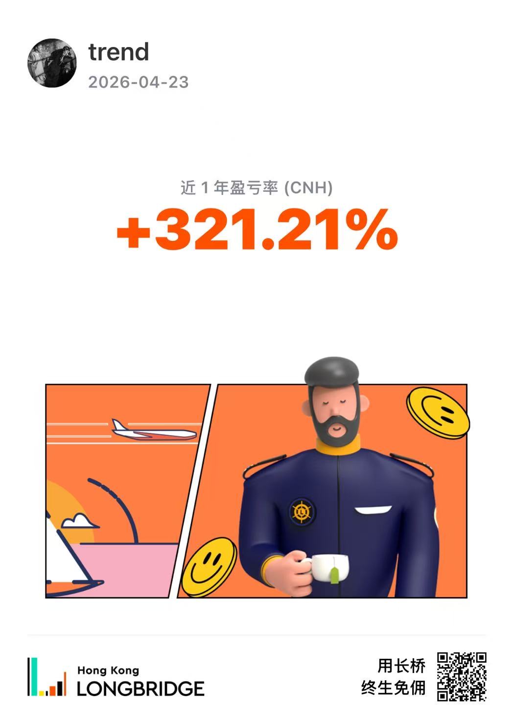 可以考虑把全部的收益曲线发出来。这一天的表现再好也没用,没人会为了一天的交易订阅一整年。
